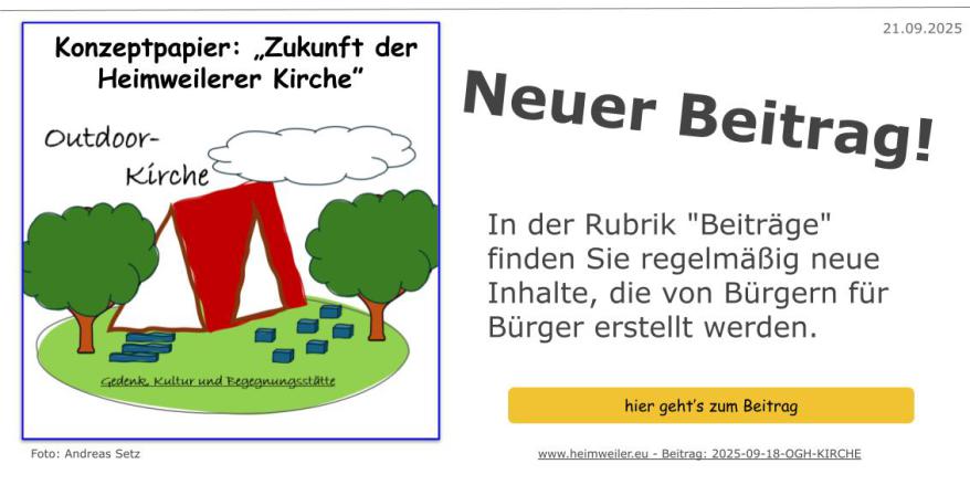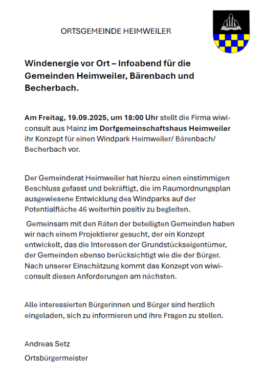 Vielen Dank im Voraus für Ihre Unterstützung, sei es beim Einsatz selbst oder in kulinarischer Form. Wir freuen uns darauf, mit euch Heimweiler noch schöner zu gestalten.