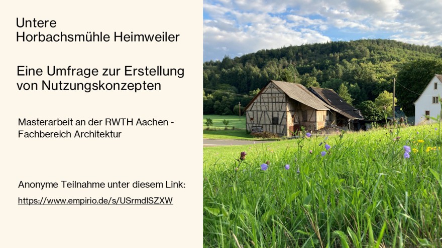 unsere Tochter Sophia schreibt gerade ihre Masterarbeit im Studiengang Architektur an der RWTH Aachen. Das Thema ist die Entwicklung von Nutzungskonzepten für die untere Horbachsmühle. Dabei wird